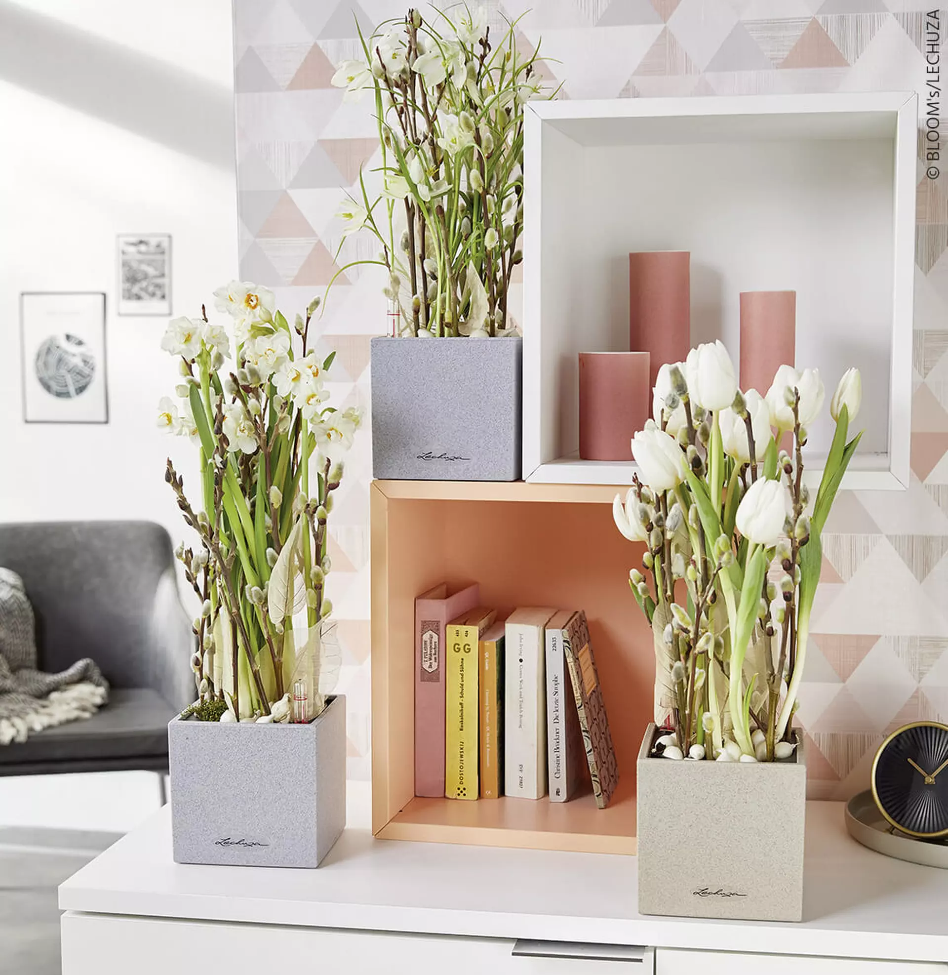 Met trendy plantenbakken van LECHUZA worden kleurrijke vroegbloeiers zoals narcissen, tulpen, primula’s en dergelijke optimaal verzorgd. In de LECHUZA CANTO Steen 14 Ook in natuursteenlook slaan ze een goed figuur!