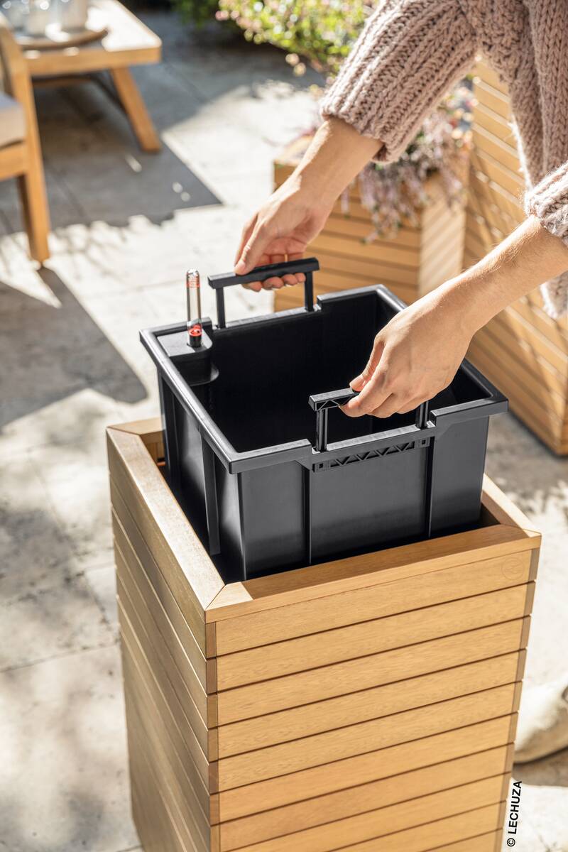 Een houten bloempot van LECHUZA is gemaakt om het jou zo makkelijk mogelijk te maken: